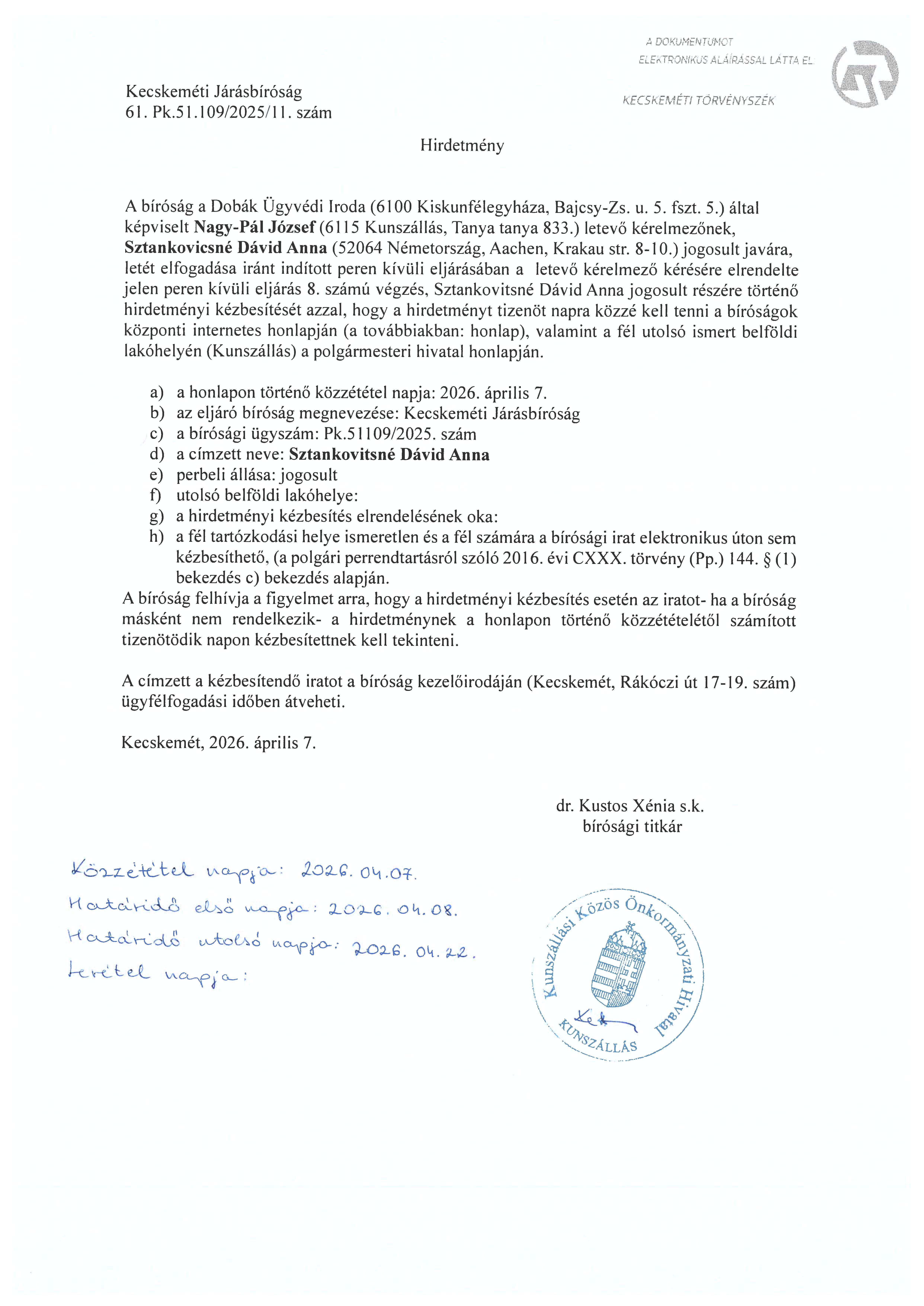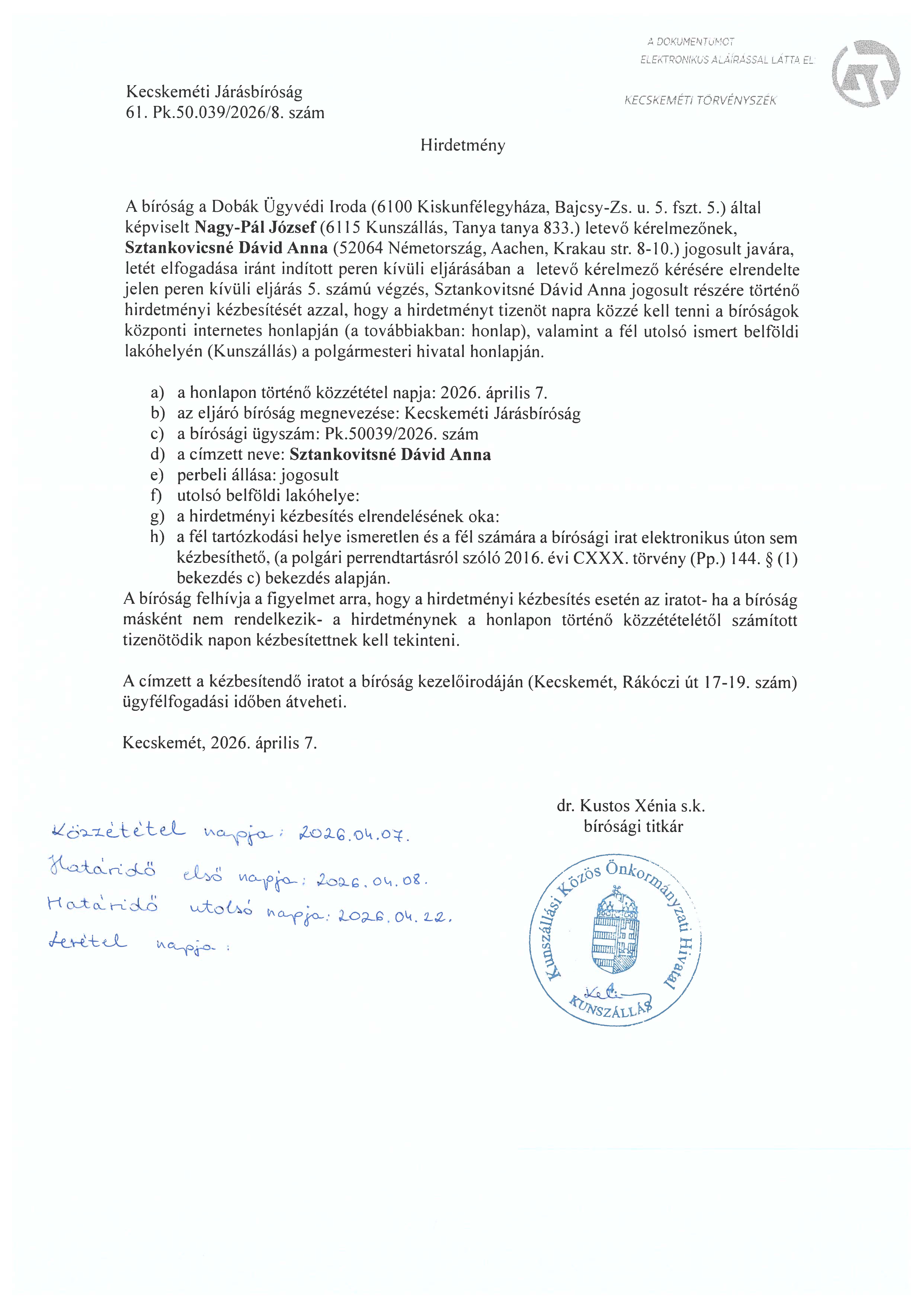 hivatalos hirdetmények