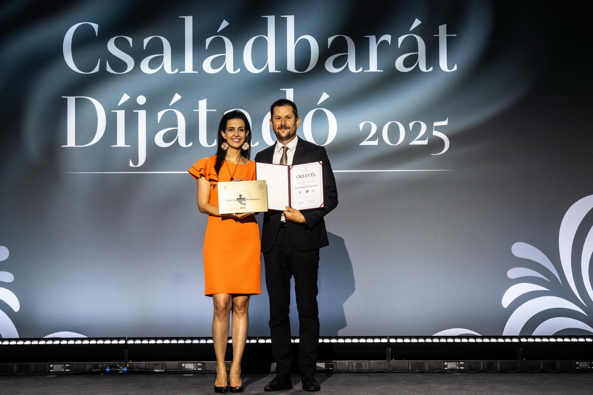A díjat nagyszabású gálaműsor keretében Dr. Koncz Zsófia családokért felelős államtitkár asszonytól vehettem át június 27-én a Bálna Budapest rendezvényhelyszínen, ahová Seres Katalin kolléganőm, a pályázat elkészítője is elkísért. Hatalmas öröm és megtiszteltetés számunkra e címet birtokolni, mert ebben ölt testet az a fajta szemlélet és gondolkodás mely mentén az elmúlt években igyekeztünk olyan támogató közeget kialakítani dolgozóink számára, hogy az valóban családbarát legyen.