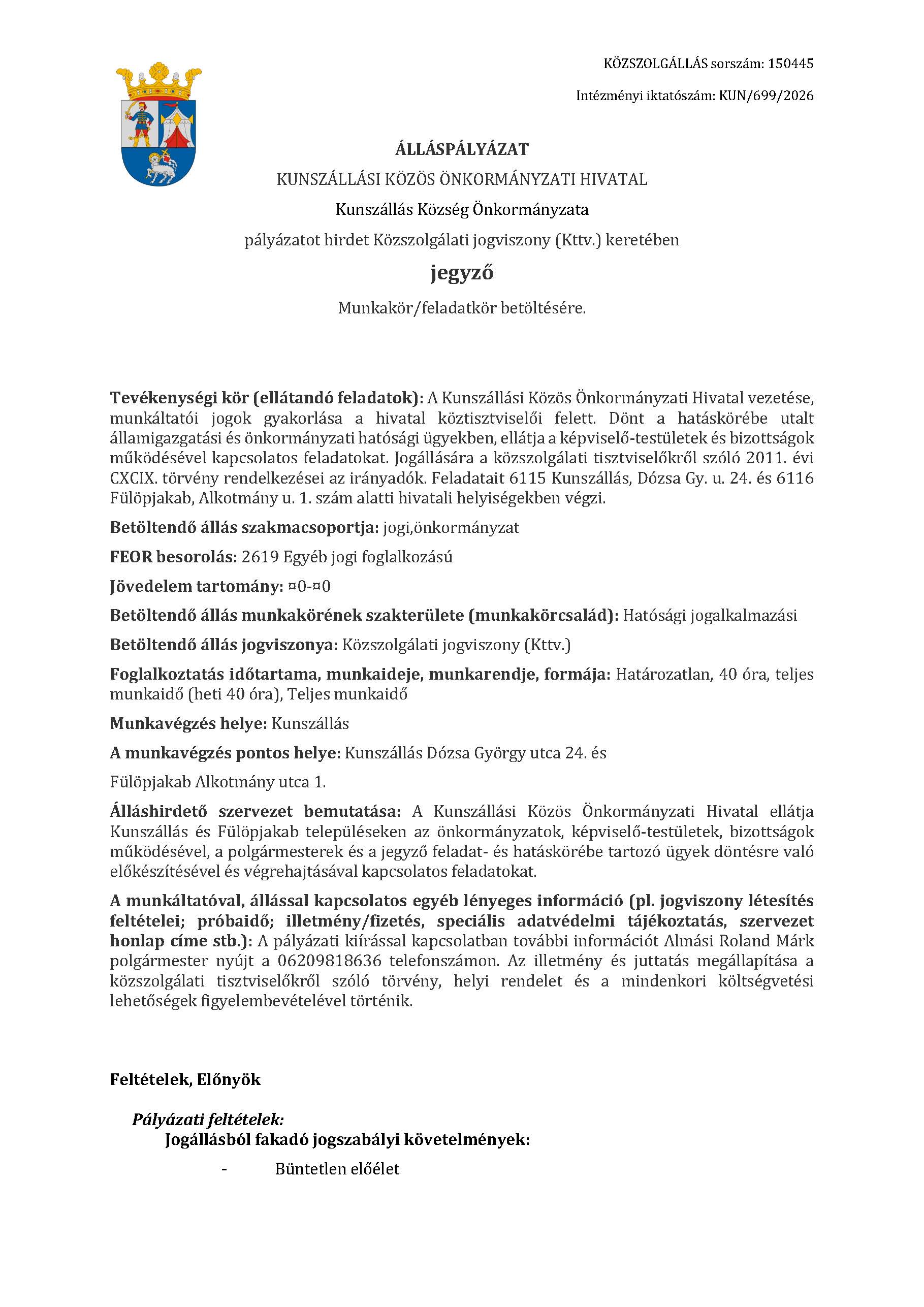 Állaspályázat - Jegyző